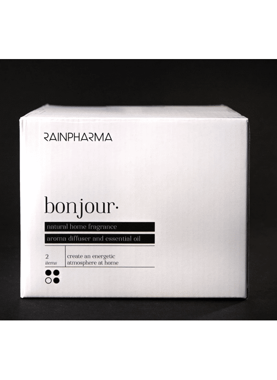 In deze box vind je een Aroma Diffuser en een essentiële olie Bonjour, om jouw huis te laten baden in de heerlijke, natuurlijke geur. Bonjour is een blend van pure essentiële oliën met aroma’s van citrus en kruiden, voor een energieke start van de dag.