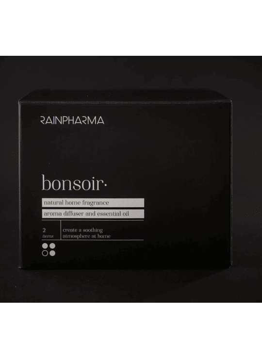 In deze box vind je een Aroma Diffuser en een essentiële olie Bonsoir, om jouw huis te laten baden in de heerlijke, natuurlijke geur. Bonsoir is een blend van pure essentiële oliën met bloemige en warme aroma’s, die je helpt de dag in rust af te sluiten.