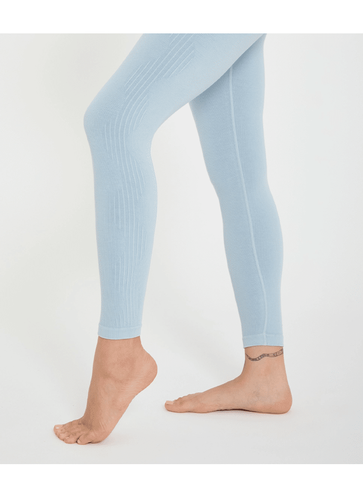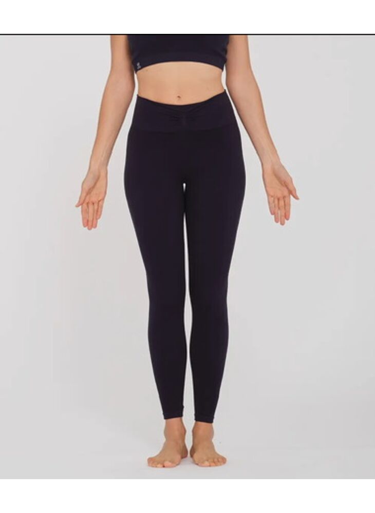 Naadloze legging gemaakt van bamboe. Mooie details: aan de voorkant op de tailleband en aan de zijkanten van de legging (delicate wave). De hoofdstructuur van de legging is rib, wat je meer comfort geeft tijdens het oefenen.